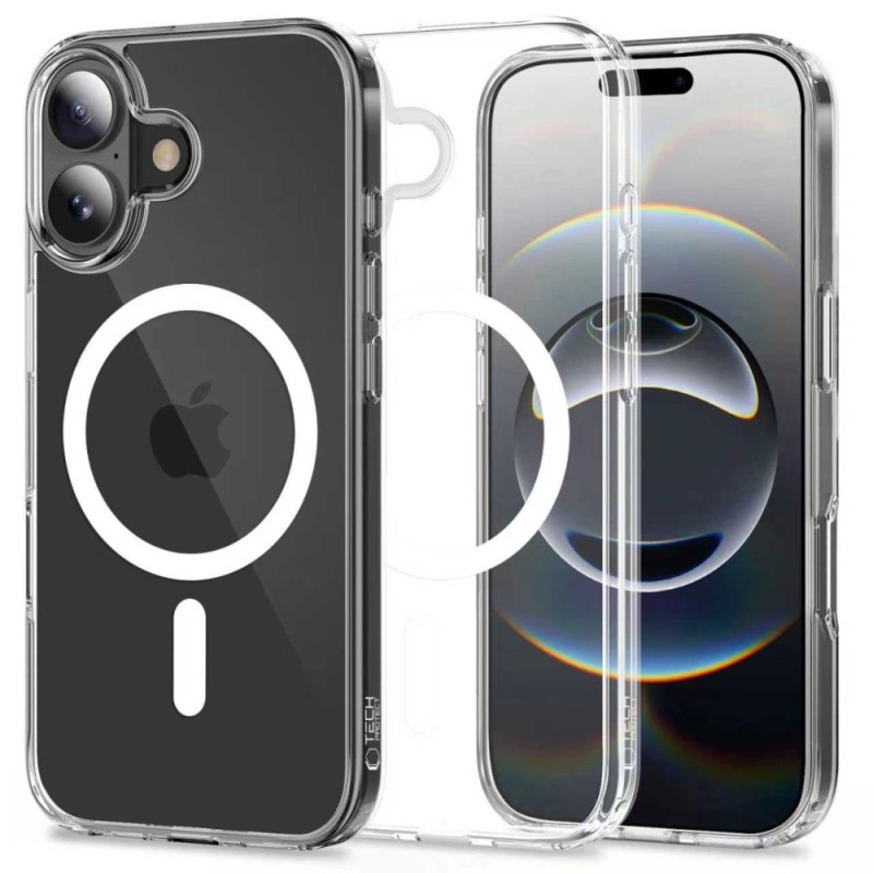 The classic, one-piece Flexair Hybrid Magsafe case from Tech-Protect with a transparent finish, designed to highlight the lines and original silhouette of the device.