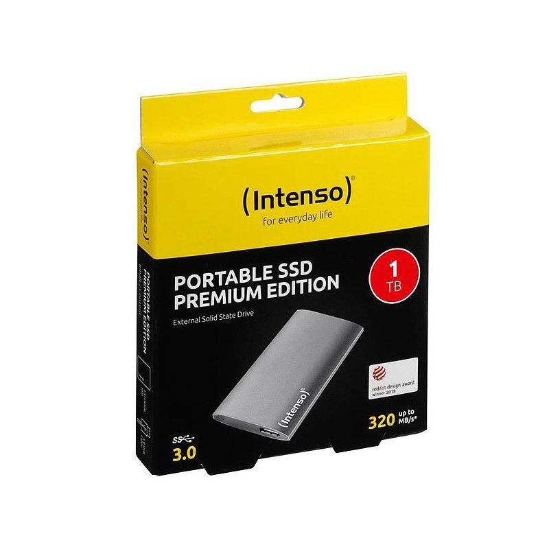 Su „Intenso“ išoriniu SSD „Premium Edition“ galite išsaugoti tokius duomenis kaip nuotraukos ar vaizdo įrašai per trumpiausią įmanomą laiką. Dėl USB 3.0 sąsajos net didelius duomenų kiekius galima perduoti iki 320 MB/s greičiu. Tiek namuose, tiek kelionėje SSD diskas visada bus puikus kompanionas. Dėl kompaktiško dydžio jis telpa į kiekvieną kišenę. 1TB